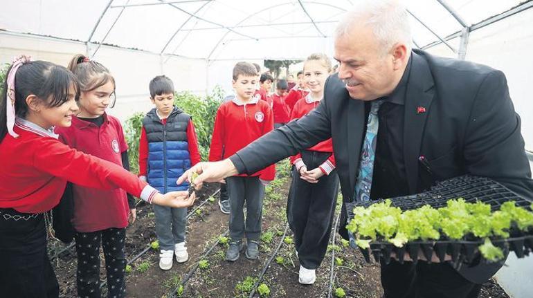 Kırklareli’deki Mustafa Dalcalı İlkokulu Müdürü İbrahim Erginsoy ise Okulda Çiftlik Projesi’yle okul bahçesinde atıl durumdaki alana 50 metrekarelik serada, marul, taze soğan ve taze fasulye üretiyor. Seranın su ihtiyacını da yağmur hasadından karşılayan öğretmen, her sabah öğrencilerle tavukları besliyor, okuldaki akvaryumdaki balıkların bakımını yapıyor.