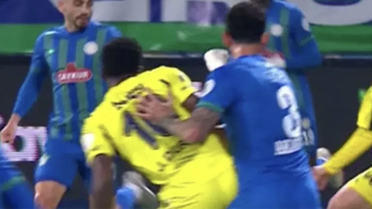 Rizespor’un ilk golünden önce Fred’in yerde kaldığı pozisyonda hakemin devam kararı