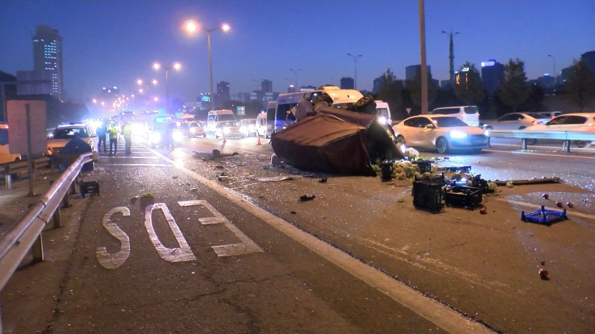 Kaza nedeniyle TEM Otoyolu’nda 2 şerit trafiğe kapanırken trafik akışı tek şeritten kontrollü olarak sağlandı.