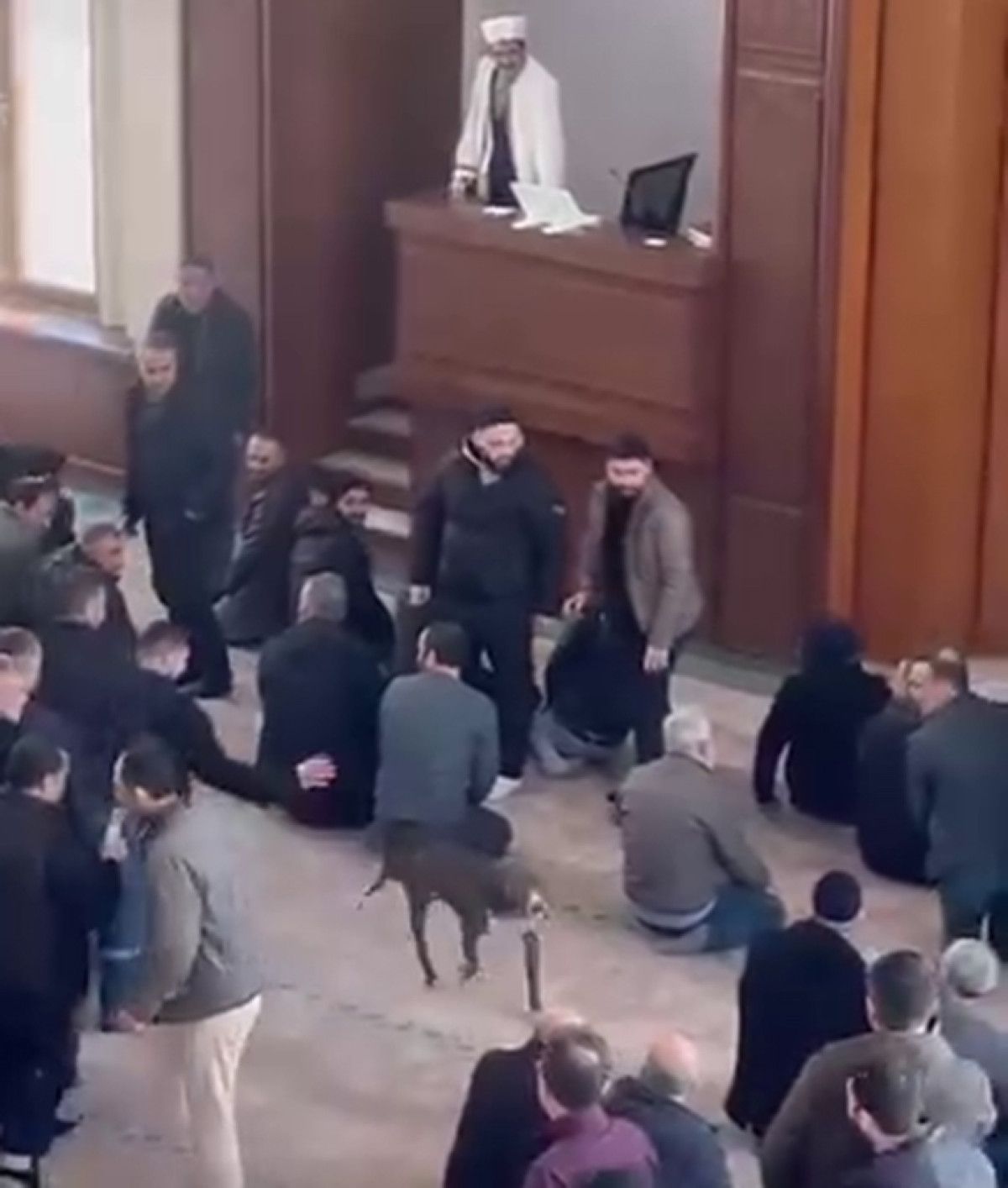 Cemaatin arasında başıboş şekilde dolaşmaya başlayan pitbull, vaaz dinleyen bazı vatandaşlar arasında tedirginliğe neden oldu.