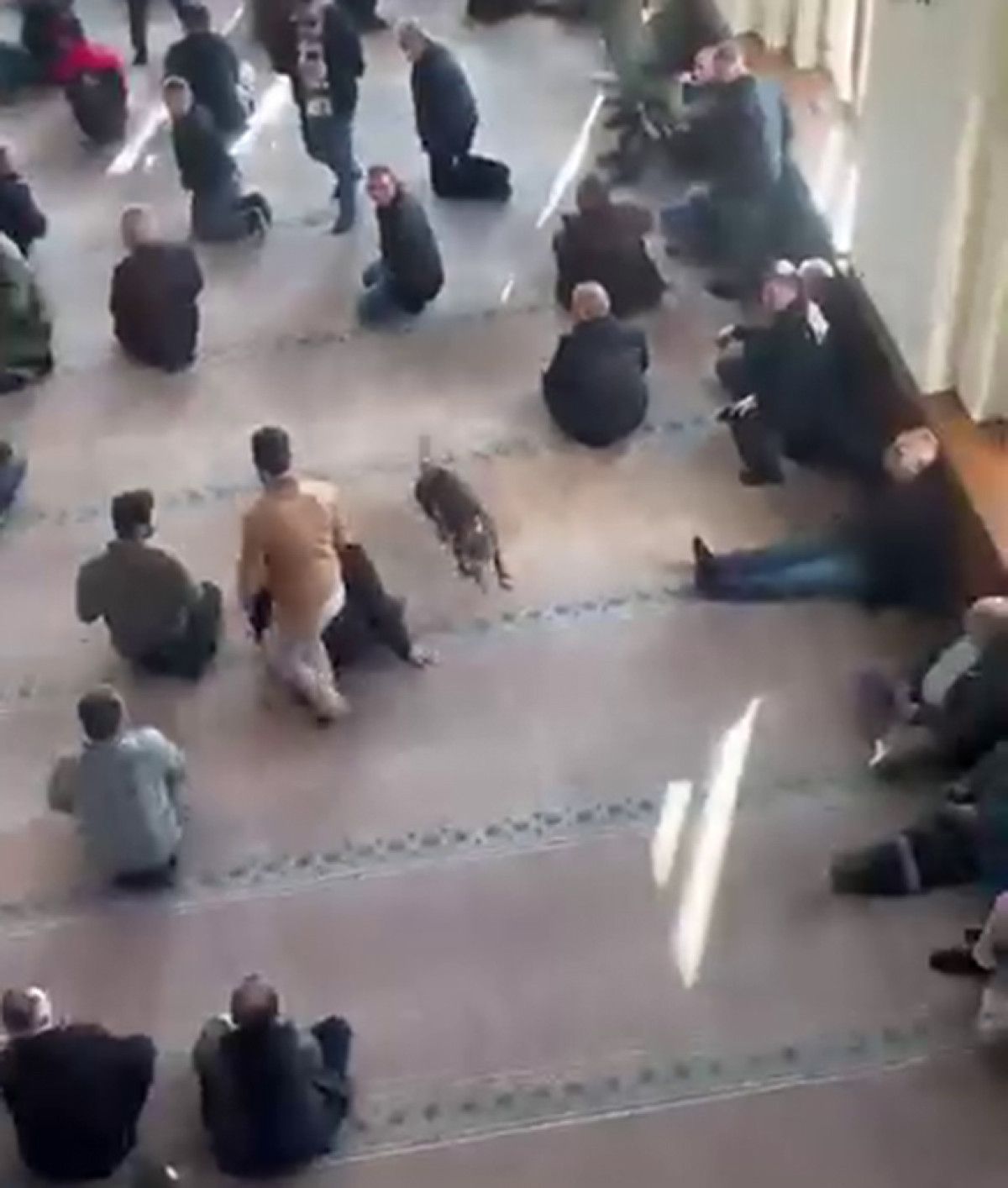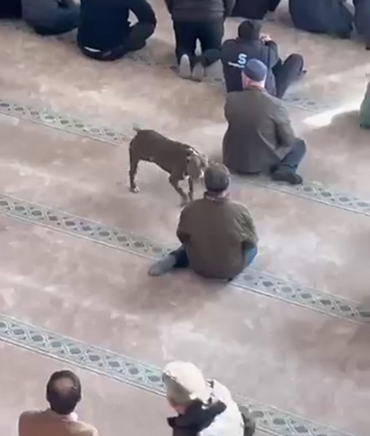 Köpeğin cami içinde dolaştığı anlar cep telefonuyla görüntülendi.