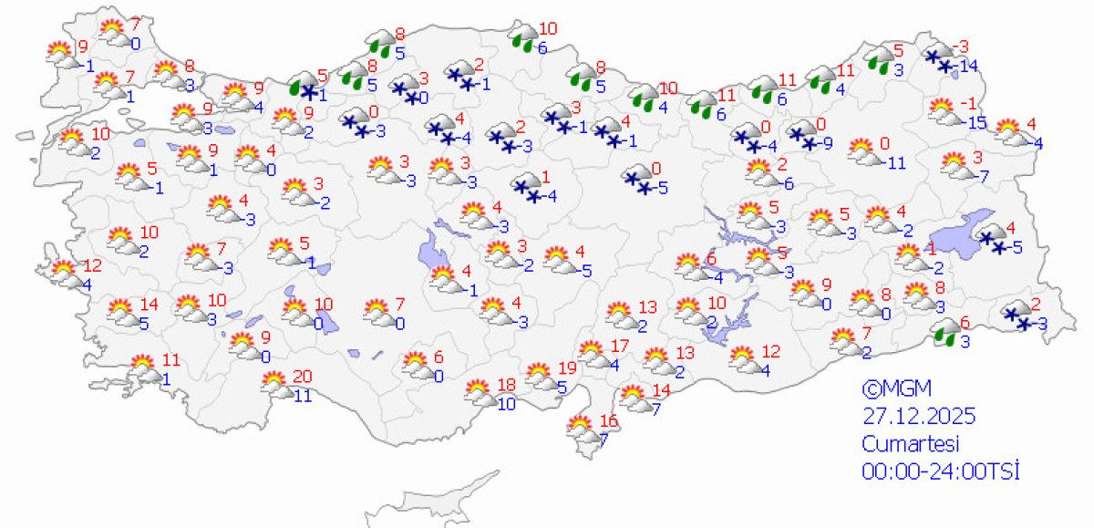 Sıcaklıkların ülke genelinde düşük seviyelerde kalarak İstanbul’da 5-10 derece, Ankara’da 2-8 derece, İzmir’de 8-12 derece ve Doğu Anadolu’da -10 ile 0 derece arasında olması bekleniyor.